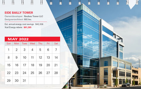 A desktop calendar for builders that shows how the Energy Design Assistance (EDA) helped certain buildings save money, along with a photo of each building.